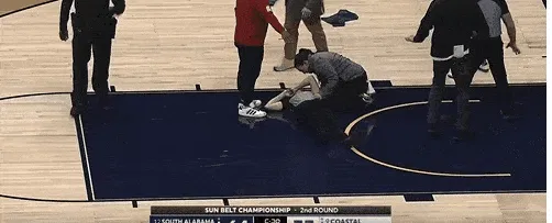 第四节还剩5分39秒时,南阿拉巴马大学的科尔-哈里斯与卡罗莱纳海岸大学的休斯顿在篮下发生冲突。哈里斯从身后有一个轻微冲撞动作,休斯顿随即转身推搡并挥拳击中哈里斯,后者也做出反击。